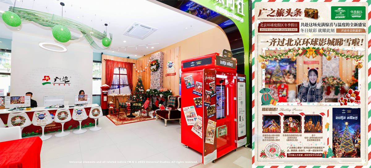 此前,广之旅广州天河领展门店已上线北京环球度假区的“雪季心愿”主题体验:游客可以使用店内的合照装置生成专属于自己的冬日 “头条”,还可以在店内的邮筒投下自己的“雪季心愿”;参与门店打卡活动,还有机会获得精美周边。活动期间,广之旅同步开启 “北京环球度假区冬季假日”专线特卖月,上线跟团游、自由行、定制游等多款产品,满足大湾区游客多元需求,还为成功报名者加赠专属福利。而双方深度合作的“北京环球度假区冬季假日”特色主题团,凭独家权益持续受关注,成市民冬季赴京游玩优选。