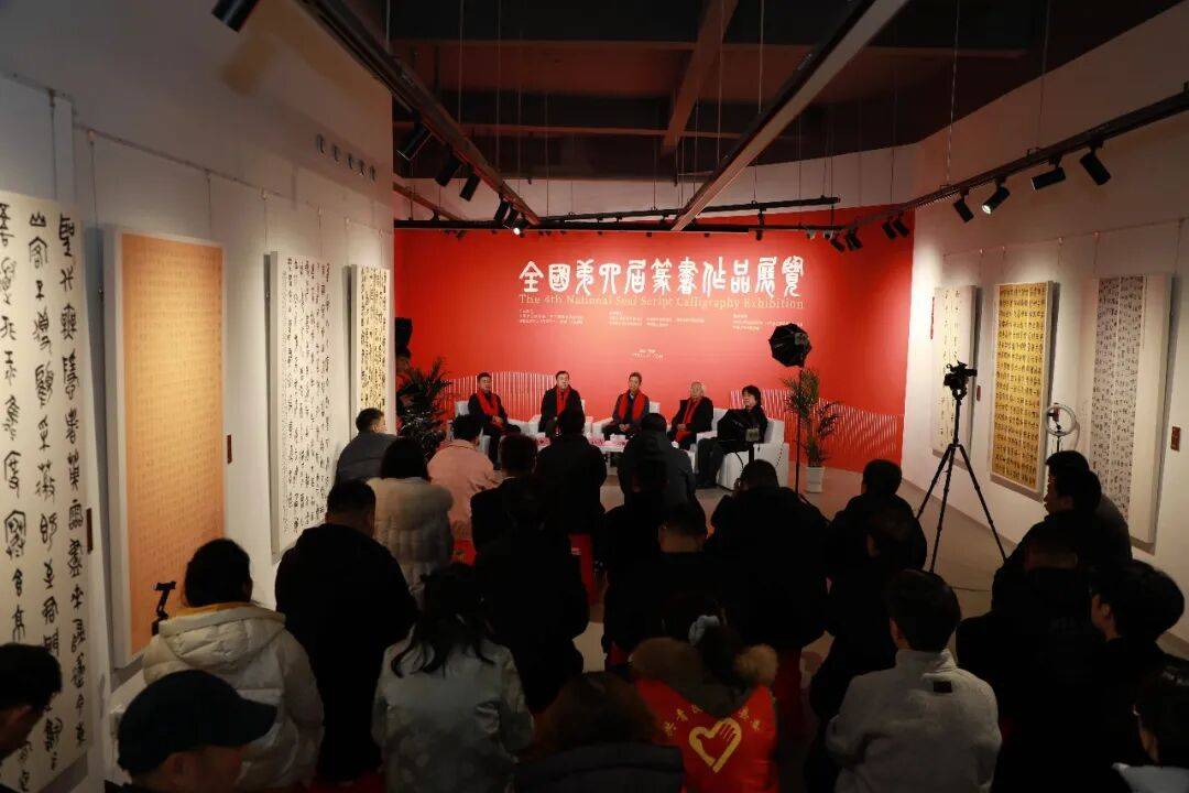 对话以问答形式,围绕“取法多元化与当代篆书创作的新面貌”“展览机制下的篆书创作面临的困境及其突破探索”“在‘文墨辉映’要求下,篆书创作如何在文字规范与艺术创造之间把握平衡”“篆书蕴含的审美元素需要怎样吸收与转化以契合时代精神”“篆书的当代价值定位与社会美育传播”等核心议题展开对话,既探讨“冷门绝学”篆书发展的现实挑战,也展望其在当代文化语境中的使命与可能。本届展览评委高庆春表示,越来越多的年轻参展作者意识到学养的重要性,不再单纯追求技法的精湛,而是注重文化内涵的积淀。部分作品以自撰诗文展现时代风貌,如书写“文化复兴”“民族自信”等主题的内容,让篆书艺术不仅有传统的韵味,更有时代的气息。这种“文墨共生”的创作理念,正是对“文墨辉映